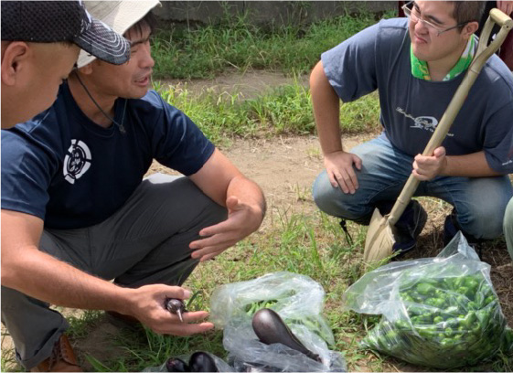 農作業は、普段の生活の中での動きの延長線上ですので、基本的に生活の中での行動(ご飯を食べるときは片手だけか両手を使って食べるかなど。)からどのような作業ができるかの判断がつきます。あとは、障害特性、性格を見ながら農作業とのマッチングを図り、その傾向から作物の選定し、栽培の指導を行います。